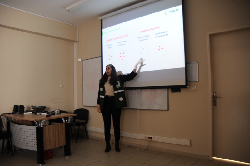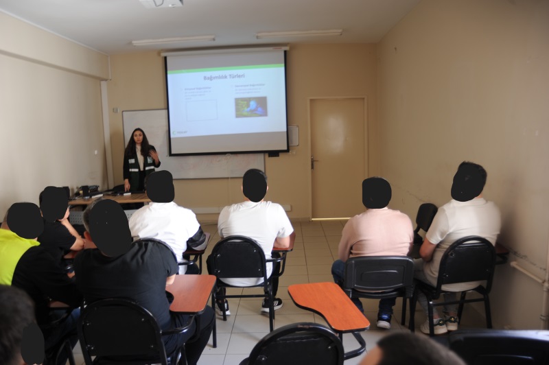 Adalet Bakanlığı ile Türkiye Yeşilay Cemiyeti Arasında Bağımlılıkla Mücadele Alanında İş Birliği Protokolü kapsamında kurumumda kalan hükümlü ve tutukluların rehabilitasyonlarının sağlanması, bağımlılıkla mücadelenin güçlendirilmesi amacıyla Kurumumuz Psiko Sosyal Servisi tarafından çeşitli faaliyetler gerçekleştirilmekte olup bu kapsamda Aydın YEDAM’da görevli Sosyal Hizmet Uzmanı Elvan Akçil FİDAN kurumuzda kalan hükümlü ve tutuklulara Ana Hatlarıyla Bağımlılık ve YEDAM Tanıtımı konulu seminer vermiştir. Hocamıza emeği için teşekkür ederiz.